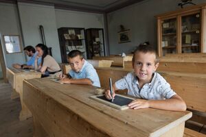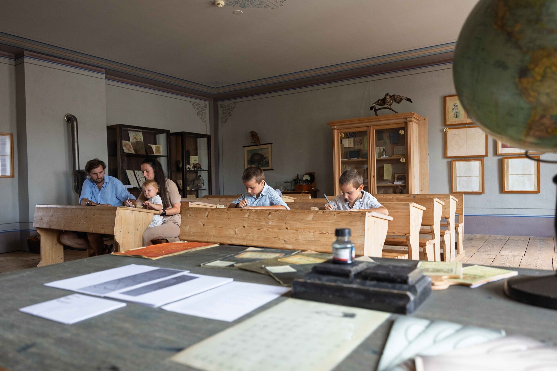 Enter the classroom and re-live the atmosphere of our great-grandparents’ education. Can you hear? The bell is ringing. Quickly, take your places!