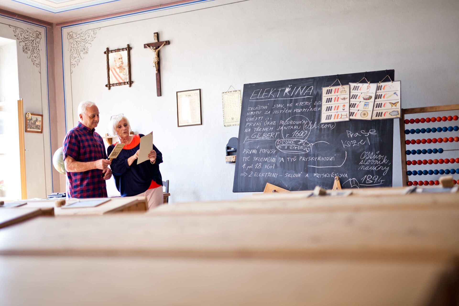The classroom is set at the turn of 19th and 20th centuries when young Bohuslav Martinů started attending school. Take a seat at the desk with Bohoušek and learn what was the school like in times of our great-grandparents. You will learn how the school year was structured, try writing on the slate board, see the equipment and discover what was taught. Oh, and be sure to behave and be prepared to answer questions, lest you be sent to the dunce’s corner.
