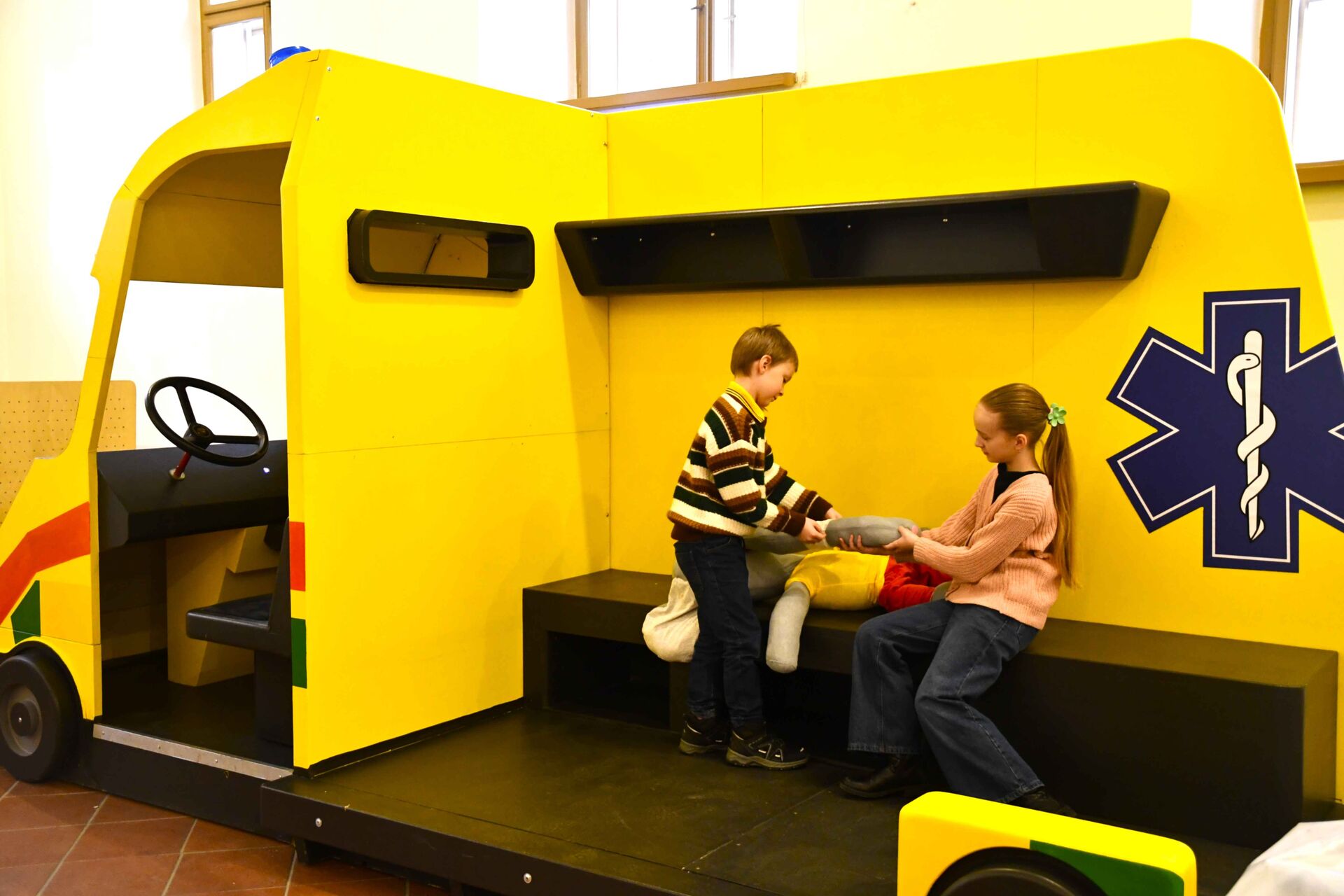 Velkým lákadlem výstavy je Záchranářská herna o rozloze 100 m² – prostor plný akce, zábavy i poučení. „Tady se na hrdiny jen nehraje, tady se jimi na chvíli skutečně stanete. Díky spolupráci s fimou THT Polička s.r.o. si můžete na obřím banneru prohlédnout a prozkoumat současné moderní hasičské auto ve skutečné velikosti. Převléknete se do zásahového obleku, zapnete blikačky, zapojíte hadice a „uhasíte“ požár. Vyzkoušíte si hašení lafetovou proudnicí a podíváte se, jak hasičská auta vznikají. Prozkoumáte velká dřevěnná záchranářská vozidla – hasičské, záchranku i policejní, nacvičíte volání na tísňovou linku, zopakujete základy první pomoci i bezpečného chování při mimořádných událostech, „projedete“ se s autíčky po městečku se všemi nástrahami dopravy a vyzkoušíte mnohé další aktivity zaměřené na prevenci. Na vlastní kůži tak pocítíte, jak náročná, a přesto fascinující je práce těch, kteří nám každý den pomáhají.“ představuje aktivní část výstavy její edukátorka Mgr. Simona Valachová. Celá herna je navíc propojená ilustracemi Miluše Řehůřkové, které tak dávají výstavě šmrnc a jednotnou tvář.